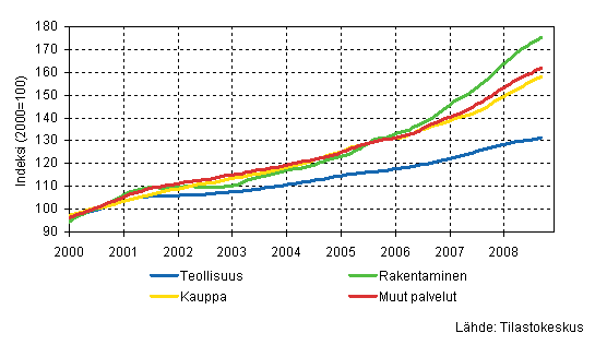 Palkkasumman trendit toimialoittain 9/2008