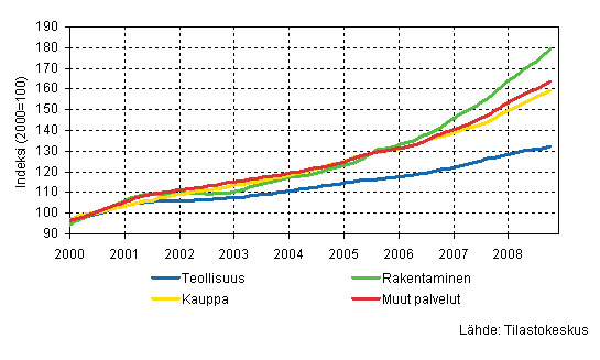 Palkkasumman trendit toimialoittain 10/2008