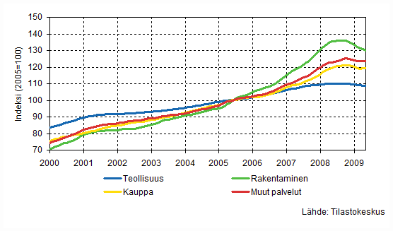Palkkasumman trendit toimialoittain 6/2009 (TOL 2008)