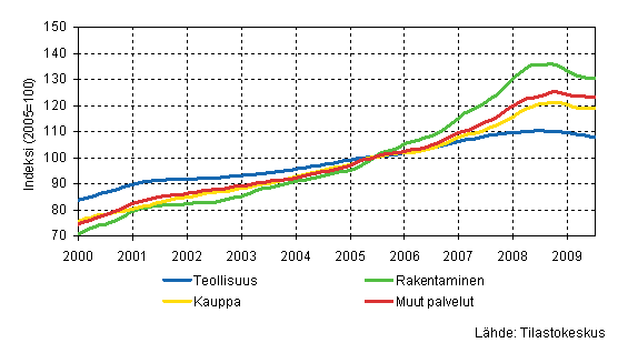 Palkkasumman trendit toimialoittain 7/2009 (TOL 2008)