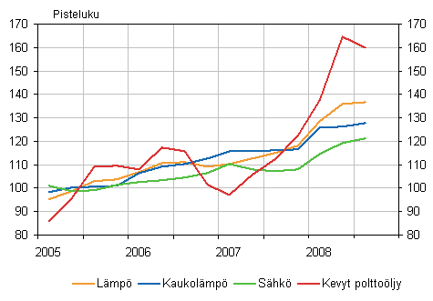 Kustannuslajeittain tarkasteltuna vuodessa nousivat eniten lämpökustannukset 18,9 prosenttia. Lämpökustannusten hintaa nosti erityisesti kevyen polttoöljyn hinnan nousu 42,8 prosentilla. Käyttösähkön kustannukset nousivat vuodessa 13,3 prosenttia ja hoitokustannukset 6,9 prosenttia.