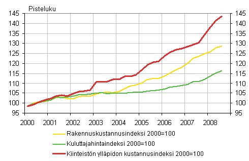 Kiinteistön ylläpidon kustannusindeksi on noussut rakennuskustannusindeksiin ja kuluttajahintaindeksiin verrattuna huomattavasti rivakammin vuoden 2007 loppupuolelta lähtien. Kiinteistön ylläpidon kustannusindeksin voimakkaaseen kasvuun on vaikuttanut erityisesti lämpökustannukset.