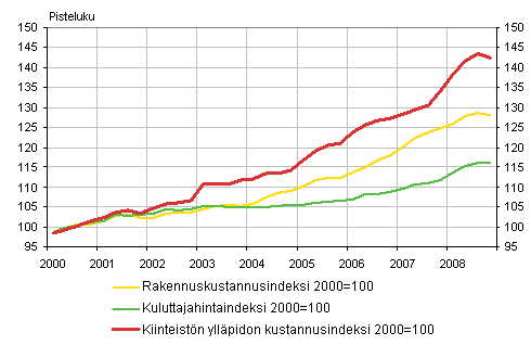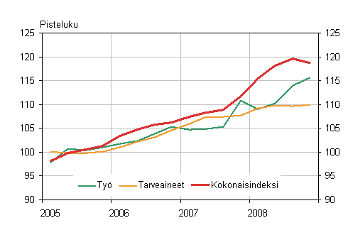 Kiinteistön ylläpidon kustannusindeksi nousi vuoden 2008