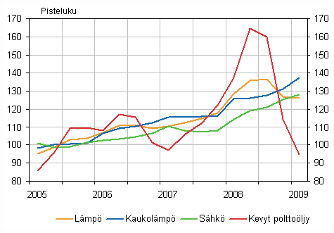 Kustannuslajeittain tarkasteltuna vuodessa nousivat eniten käyttösähkön kustannukset 11,8 prosenttia. Lämpökustannukset sen sijaan laskivat kahdella prosentilla, johtuen kevyen polttoöljyn hinnan halpenemisesta yli 30 prosentilla verrattuna edellisen vuoden ensimmäiseen neljännekseen.