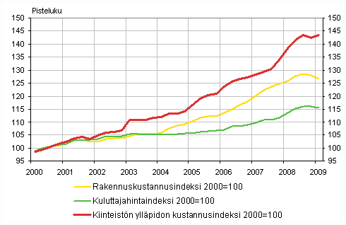 Kiinteistön ylläpidon kustannusindeksi nousi vuoden 2009