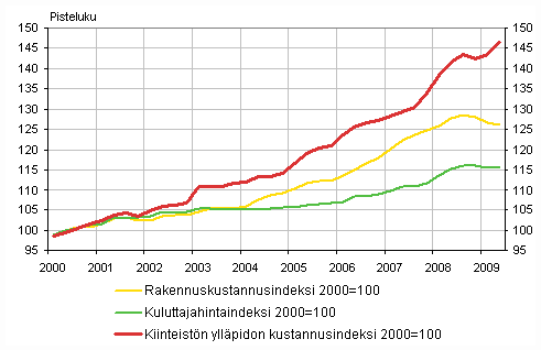 Kiinteistön ylläpidon kustannusindeksi nousi vuoden 2009