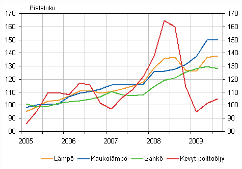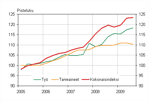 Vuoden 2009 2. neljänneksestä vuoden 2009 3. neljännekseen kokonaisindeksi nousi 0,3 prosenttia.
