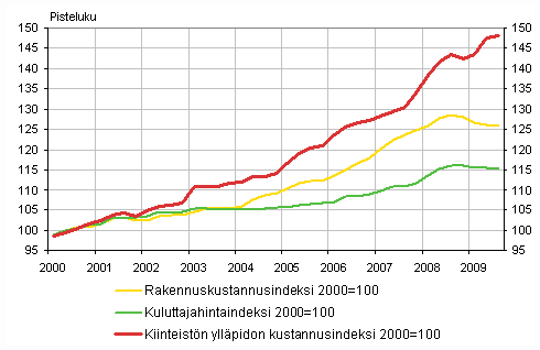 Kiinteistön ylläpidon kustannusindeksi nousi vuoden 2009