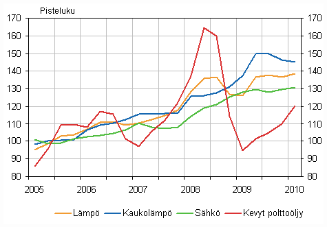 Kustannuslajeittain tarkasteltuna vuodessa nousivat eniten lämpökustannukset 10,0 prosenttia. Lämpökustannukset nousivat johtuen kevyen polttoöljyn hinnan kallistumisesta yli 27 prosentilla verrattuna edellisen vuoden ensimmäiseen neljännekseen.