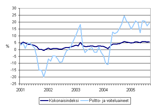 Eniten kokonaisindeksin nousuun vaikuttivat poltto- ja voiteluaineiden kallistuminen sekä palkkojen ja välillisten palkkojen korotukset. Poltto- ja voiteluaineiden hinnat kohosivat vuodessa runsaat 19 prosenttia, palkat vajaat 4 prosenttia ja välilliset palkat noin 5 prosenttia. Vakuutusmaksut kallistuivat vuodessa yli 7 prosenttia.