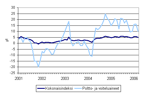 Eniten kokonaisindeksin nousuun vaikutti poltto- ja voiteluaineiden kallistuminen sekä palkkojen ja välillisten palkkojen korotukset. Poltto- ja voiteluaineiden hinnat nousivat vuodessa 9,9 prosenttia, palkat ja välilliset palkat 3,6 prosenttia.