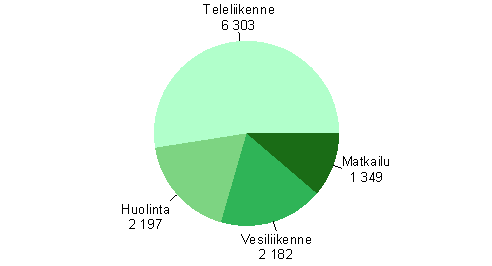 Liikenteen toimialoista ovat julkaisussa mukana vesiliikenne, huolinta ja rahtaus, matkatoimistot ja muu matkailua palveleva toiminta sekä teleliikenne. Näillä toimialoilla kertyi liikevaihtoa yhteensä 12 miljardia euroa vuonna 2005.