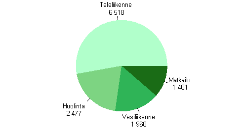 Liikenteen toimialoista ovat julkaisussa mukana vesiliikenne, huolinta ja rahtaus, matkatoimistot ja muu matkailua palveleva toiminta sekä teleliikenne. Näillä toimialoilla kertyi liikevaihtoa yhteensä 12,4 miljardia euroa vuonna 2006.