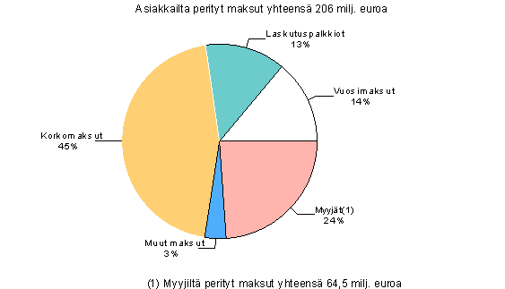 Luottokorttien käytöstä perityt maksut vuonna 2004 maksutyypeittäin