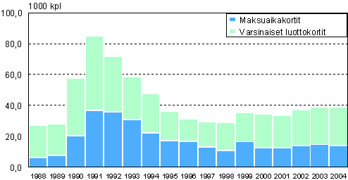 Maksuhäiriön takia peruutetut tilit vuosina 1988-2004, kpl
