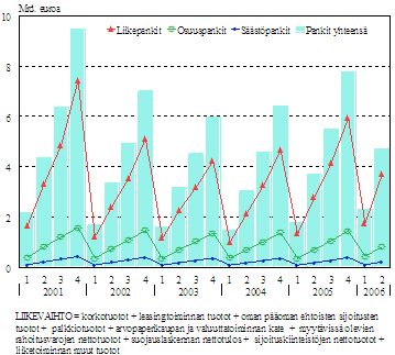 Kotimaisten pankkien liikevaihto neljännesvuosittain vuosina 2001-2006