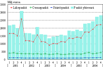 Kotimaisten pankkien liikevaihto neljännesvuosittain vuosina 2001-2006