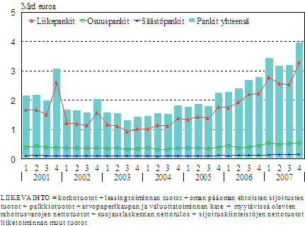 Kotimaisten pankkien liikevaihto vuosineljänneksittäin