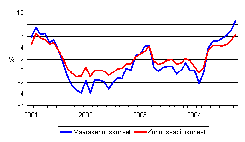 Perinteisten maarakennuskoneiden ja kunnossapitokoneiden kustannusten vuosimuutokset 1/2001 - 10/2004
