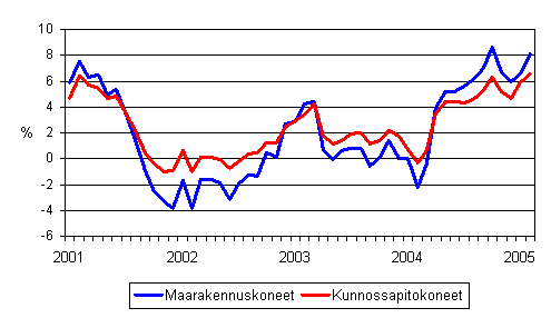 Perinteisten maarakennuskoneiden ja kunnossapitokoneiden kustannusten vuosimuutokset 2/2001 - 2/2005