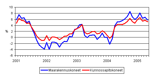 Maarakennusalan konekustannukset nousivat 5,6 prosenttia vuoden 2004 toukokuusta vuoden 2005 toukokuuhun. Kunnossapitokoneiden kustannukset kasvoivat 5,2 prosenttia ja perinteisten maarakennuskoneiden 5,8 prosenttia. Ajoneuvonosturien kustannukset kohosivat 5,8 prosenttia.