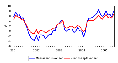 Perinteisten maarakennuskoneiden ja kunnossapitokoneiden kustannusten vuosimuutokset 1/2001 - 6/2005