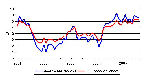 Perinteisten maarakennuskoneiden ja kunnossapitokoneiden kustannusten vuosimuutokset 1/2001 - 8/2005