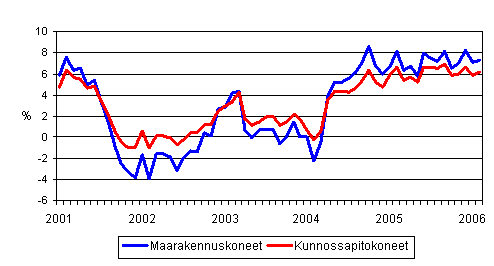 Perinteisten maarakennuskoneiden ja kunnossapitokoneiden kustannusten vuosimuutokset 1/2001 - 2/2006