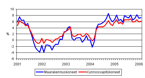 Perinteisten maarakennuskoneiden ja kunnossapitokoneiden kustannusten vuosimuutokset 1/2001 - 3/2006