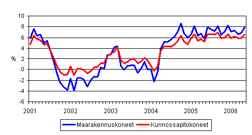 Perinteisten maarakennuskoneiden ja kunnossapitokoneiden kustannusten vuosimuutokset 1/2001 - 5/2006