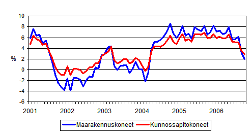 Perinteisten maarakennuskoneiden ja kunnossapitokoneiden kustannusten vuosimuutokset 1/2001 - 10/2006