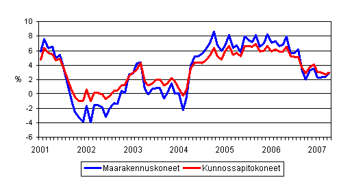 Perinteisten maarakennuskoneiden ja kunnossapitokoneiden kustannusten vuosimuutokset 1/2001 - 4/2007