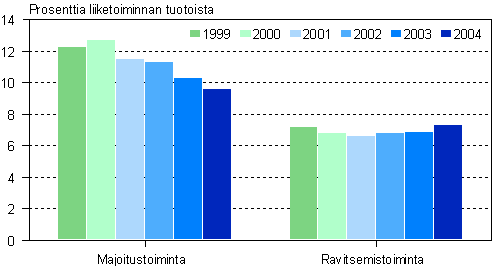 Majoitus- ja ravitsemistoiminnan käyttökate 1999-2004