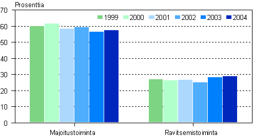 Majoitus- ja ravitsemistoiminnan kokonaisvelat / liikevaihto 1999-2004