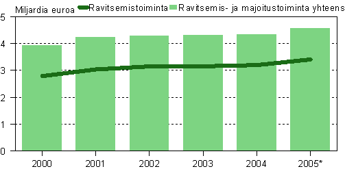 Majoitus- ja ravitsemistoiminnan liikevaihto oli vuonna 2005 Tilastokeskuksen ennakkotietojen mukaan 5,3 prosenttia suurempi kuin edellisvuonna. Toimiala keräsi liikevaihtoa 4,6 miljardia euroa. Ravitsemistoiminnan liikevaihto kasvoi 211 miljoonaa euroa edellisvuodesta eli 6,6 prosenttia. Liikevaihtoa kertyi 3,4 miljardia euroa.