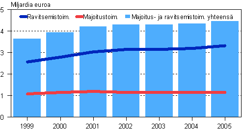 Majoitus- ja ravitsemistoiminnassa oli 10 200 yritystä vuonna 2005. Yritysten lukumäärä kasvoi noin 200 yrityksellä ja henkilöstö 600 henkilöllä. Liikevaihtoa kertyi 124 miljoonaa euroa edellisvuotista enemmän. Yritysten yhteenlaskettu liikevaihto kohosi 4,5 miljardiin euroon ja ne työllistivät 49 200 henkilöä. Jalostusarvoa majoitus- ja ravitsemistoiminnassa kertyi 1,7 miljardia euroa, kasvu edellisestä vuodesta oli 40 miljoonaa euroa. Henkilöä kohden laskettuna jalostusarvoa kertyi 34 000 euroa.