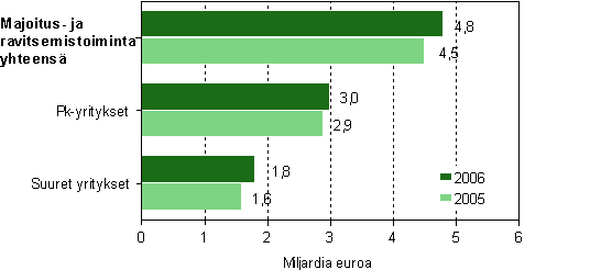 Majoitus- ja ravitsemistoiminnan liikevaihto oli vuonna 2006 Tilastokeskuksen ennakkotietojen mukaan 6,9 prosenttia suurempi kuin edellisvuonna. Toimiala keräsi liikevaihtoa 4,8 miljardia euroa. Ravitsemistoiminnan liikevaihto kasvoi 202 miljoonaa euroa edellisvuodesta eli 6,1 prosenttia. Liikevaihtoa kertyi 3,5 miljardia euroa.