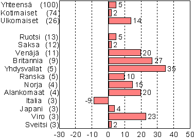 Yhdysvaltalaisten yöpymiset lisääntyivät kuitenkin eniten, 35