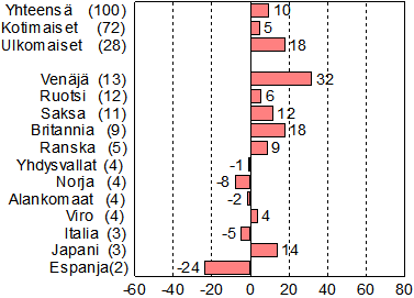 Lähde: Tilastokeskuksen matkailutilastot. Tilastokeskus