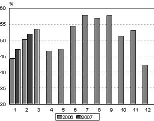 kertaa, ja lisäystä oli 31 prosenttia vuoden 2006 helmikuuhun