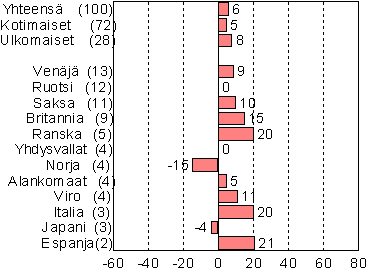Lähde: Tilastokeskuksen matkailutilastot. Tilastokeskus