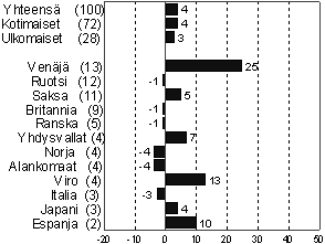 | Ranska - France | 23 051 | -3,5 | 186 544 | 3,3 |