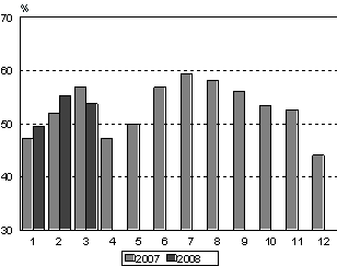 Maaliskuussa venäläiset olivat suurin ulkomaisten matkailijoiden ryhmä 65 000 yöpymisvuorokaudellaan. Heidän yöpymisensä lisääntyivät 13 prosenttia vuoden 2007 maaliskuuhun verrattuna. Brittien yöpymisiä oli toiseksi eniten, lähes 54 000 yöpymisvuorokautta. Brittien yöpymiset lisääntyivät 33 prosenttia viime vuodesta. Suurin kasvu vuoden 2007 maaliskuuhun verrattuna oli espanjalaisten yöpymisissä, 39 prosenttia, ja heille kirjattiin yöpymisiä 13 600 vuorokautta. Sitä vastoin ranskalaisten yöpymiset vähenivät 13 prosenttia ja virolaisten 8 prosenttia viime vuoden vastaavaan ajankohtaan verrattuna. Myös saksalaisten ja ruotsalaisten yöpymiset vähenivät maaliskuussa 6 prosenttia vuoden 2007 maaliskuuhun verrattuna.