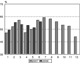 Yöpymiset kaikissa majoitusliikkeissä kesäkuussa 2008 ja tammi-kesäkuussa 2008 ja niiden vuosimuutokset, ennakkotieto