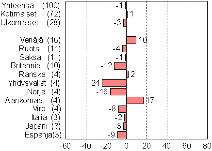 Muiden tärkeimpien Suomeen suuntautuvien matkailijamaiden yöpymiset vähenivät vuoden 2007 joulukuuhun verrattuna. Yhdysvaltalaisten yöpymiset vähenivät peräti 24 prosenttia ja norjalaisten yöpymiset 16 prosenttia edellisvuodesta.