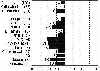 | Venäjä -Russia | 97 964 | -9,8 | 726 415 | -1,3 |