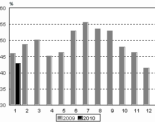 Ulkomaisten matkailijoiden yöpymisiä kirjattiin Suomen majoitusliikkeissä 492 000 vuorokautta tammikuussa 2010, mikä oli 9 prosenttia vähemmän kuin tammikuussa 2009. Yöpymisten kokonaismäärä väheni 6 prosenttia viime vuodesta ja yöpymisiä kirjattiin 1,2 miljoonaa vuorokautta. Kotimaisten matkailijoiden yöpymiset vähenivät 3 prosenttia vuoden 2009 tammikuuhun verrattuna. Luvut ovat Tilastokeskuksen majoitustilaston ennakkotietoja ja ne on kerätty majoitusliikkeiltä, joissa on vähintään 10 huonetta, mökkiä tai sähköpistokkeella varustettua matkailuvaunupaikkaa sekä retkeilymajoilta.