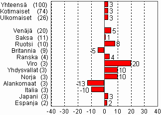 | Venäjä -Russia | 108 401 | 11,2 | 740 524 | 2,1 |