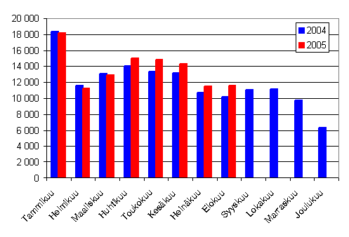 Lähde: Ensirekisteröintitilastot 2005. Tilastokeskus, AKE