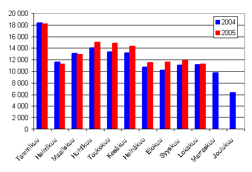 Lähde: Ensirekisteröintitilastot 2005. Tilastokeskus, AKE